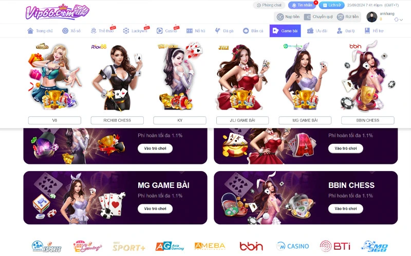 Người chơi có thể lựa chọn các tựa game bài yêu thích từ giao diện chính của Vip66. Chọn trò chơi muốn tham gia, đặt cược và bắt đầu trải nghiệm. Giao diện thân thiện sẽ giúp bạn dễ dàng theo dõi và tham gia các ván bài mà không gặp bất kỳ trở ngại nào.